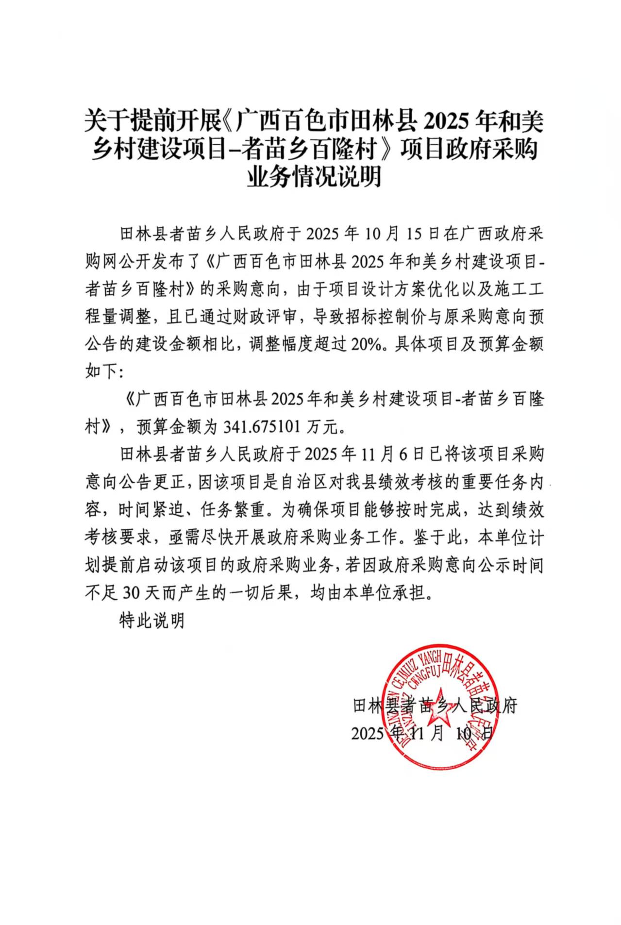 广西百色市田林县2025年和美乡村建设项目_者苗乡百隆村采购项目的潜在供应商应在广西政府采购云平台线上获取获取采购文件,并于2025年11月25日 11:00(北京时间)前提交响应文件。
