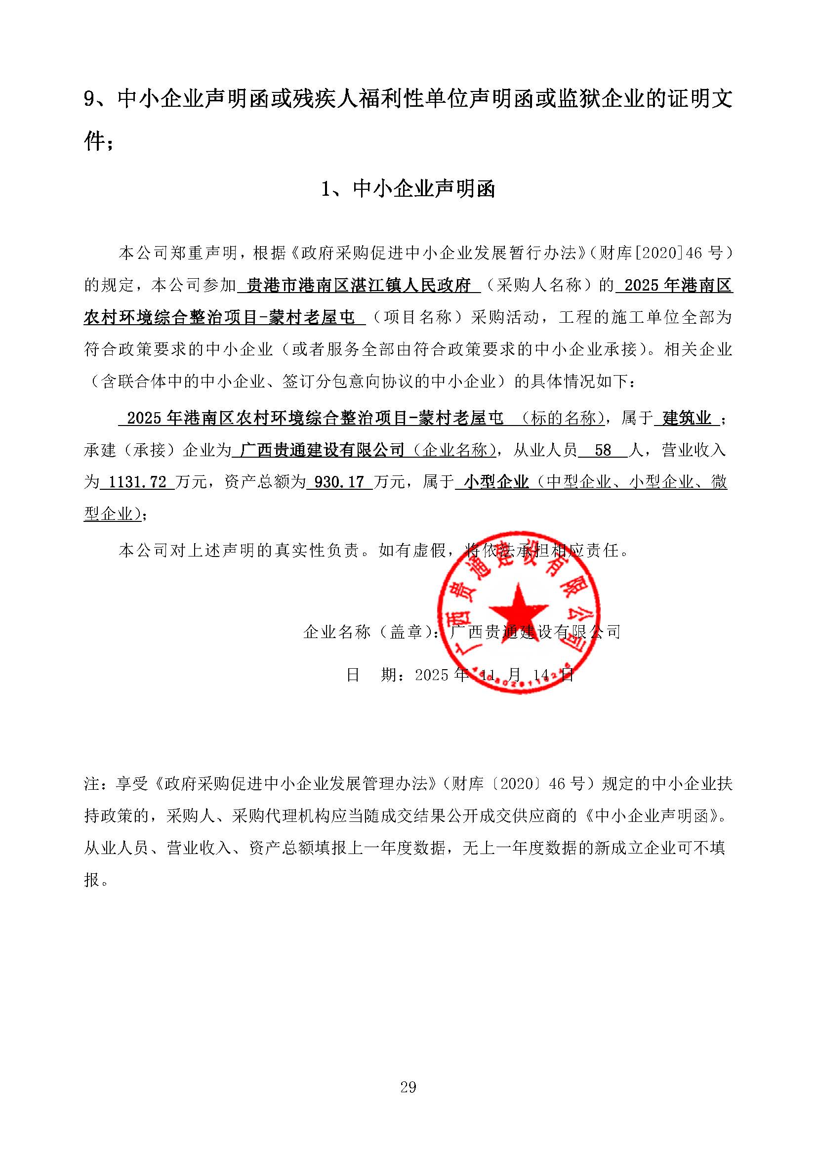 二、项目名称:2025年港南区农村环境综合整治项目-蒙村老屋屯